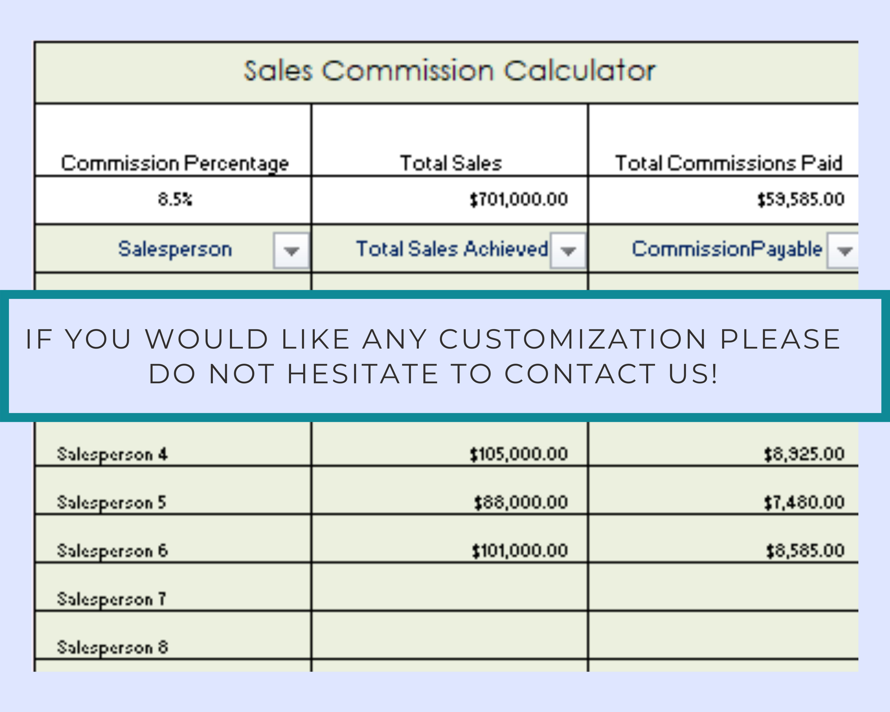 Sales Commission Calculator for Multiple Rates Editable Excel Sales