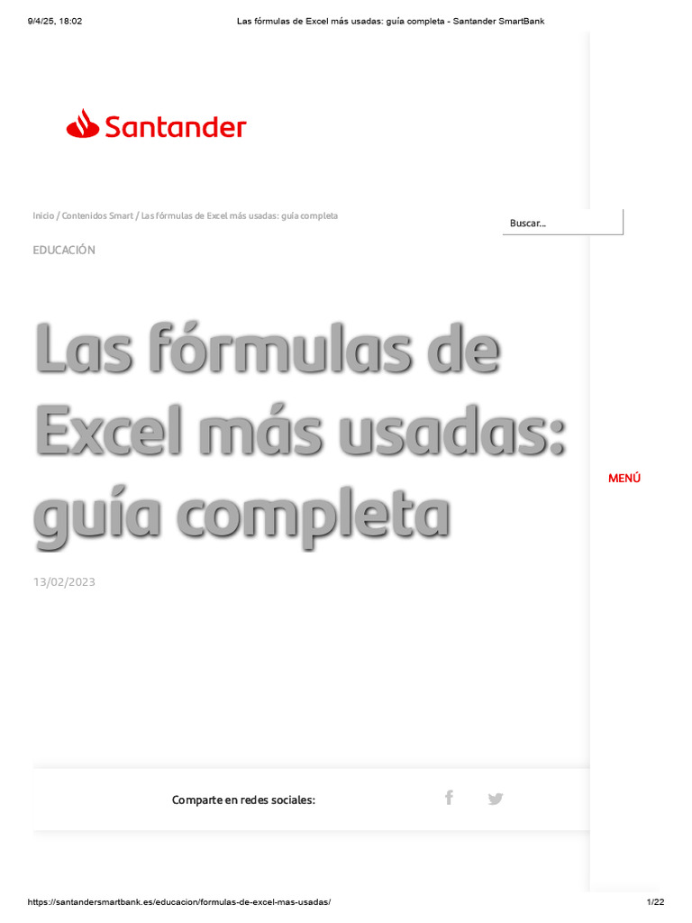 Las Fórmulas de Excel Más Usadas Guía Completa Santander SmartBank