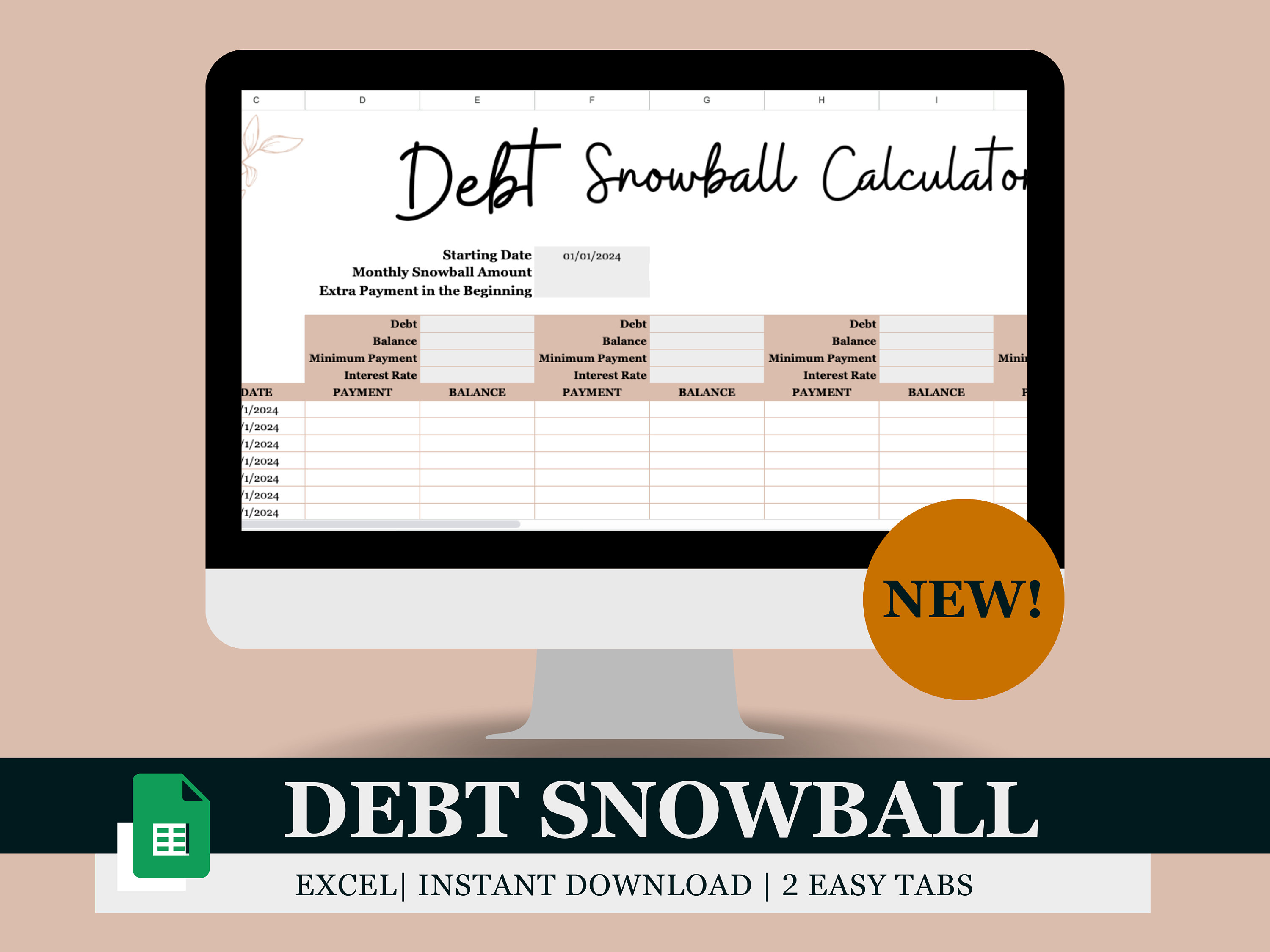 Debt Snowball Calculator Spreadsheet for Google Sheets, Microsoft Excel