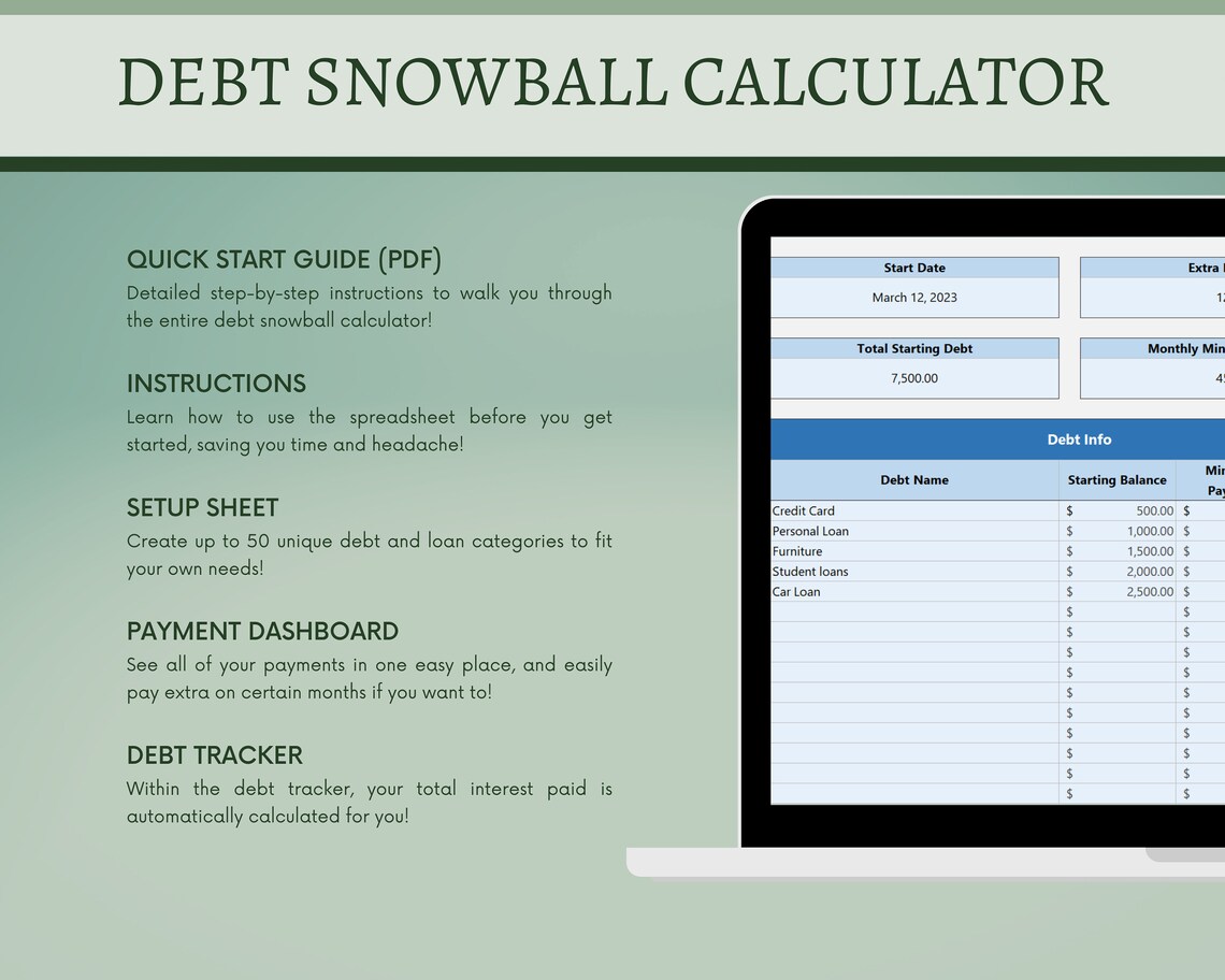 Debt Snowball Calculator Digital Excel Planner Spreadsheet Etsy