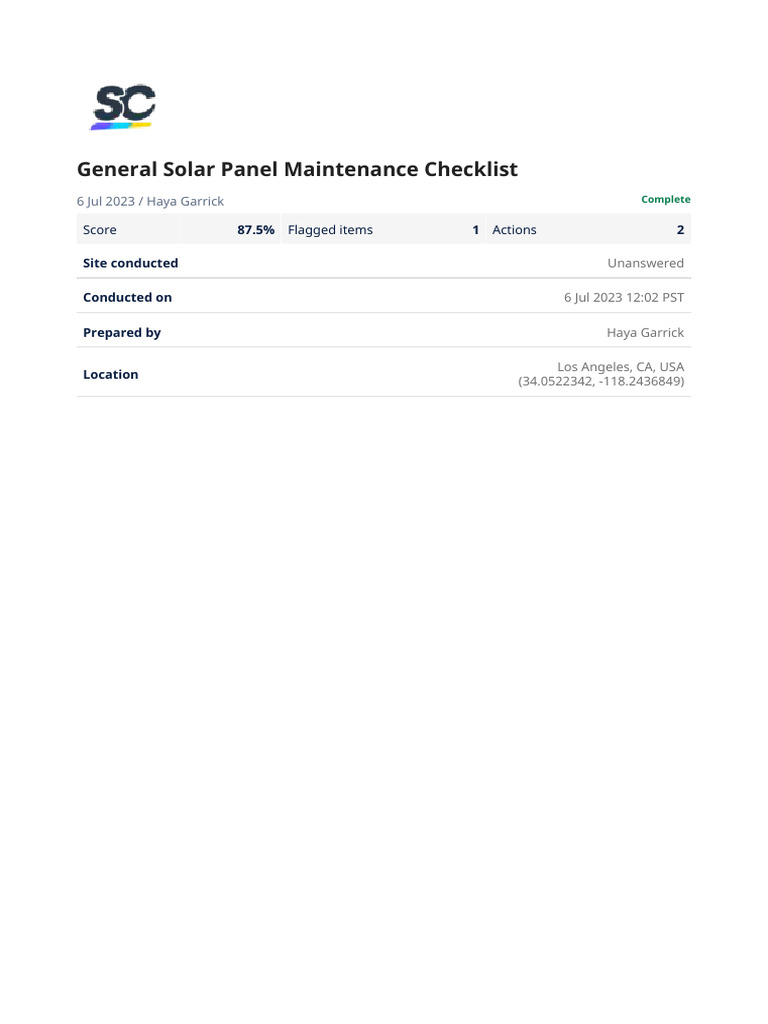 General Solar Panel Maintenance Checklist Sample Report PDF
