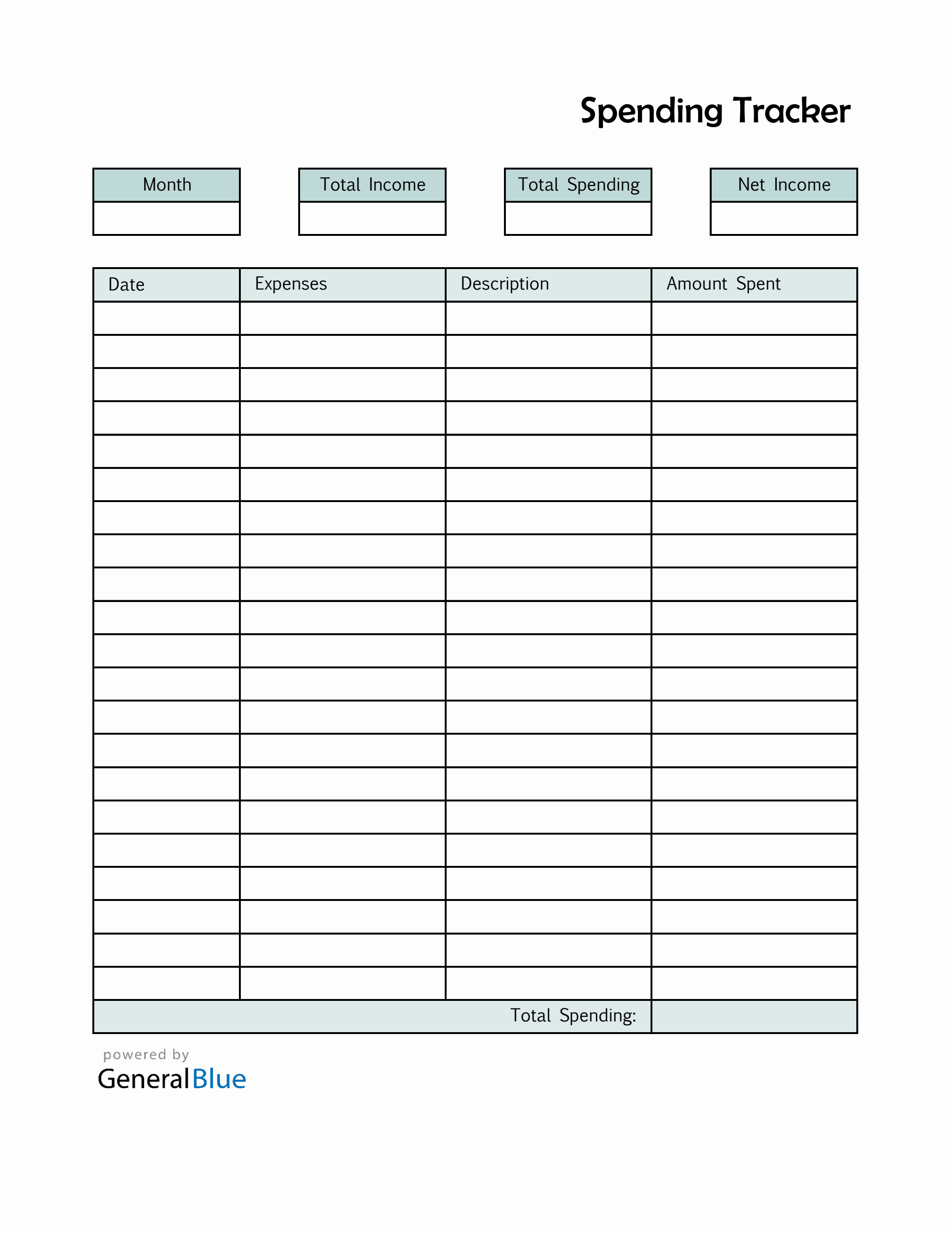 Spending Tracker Excel