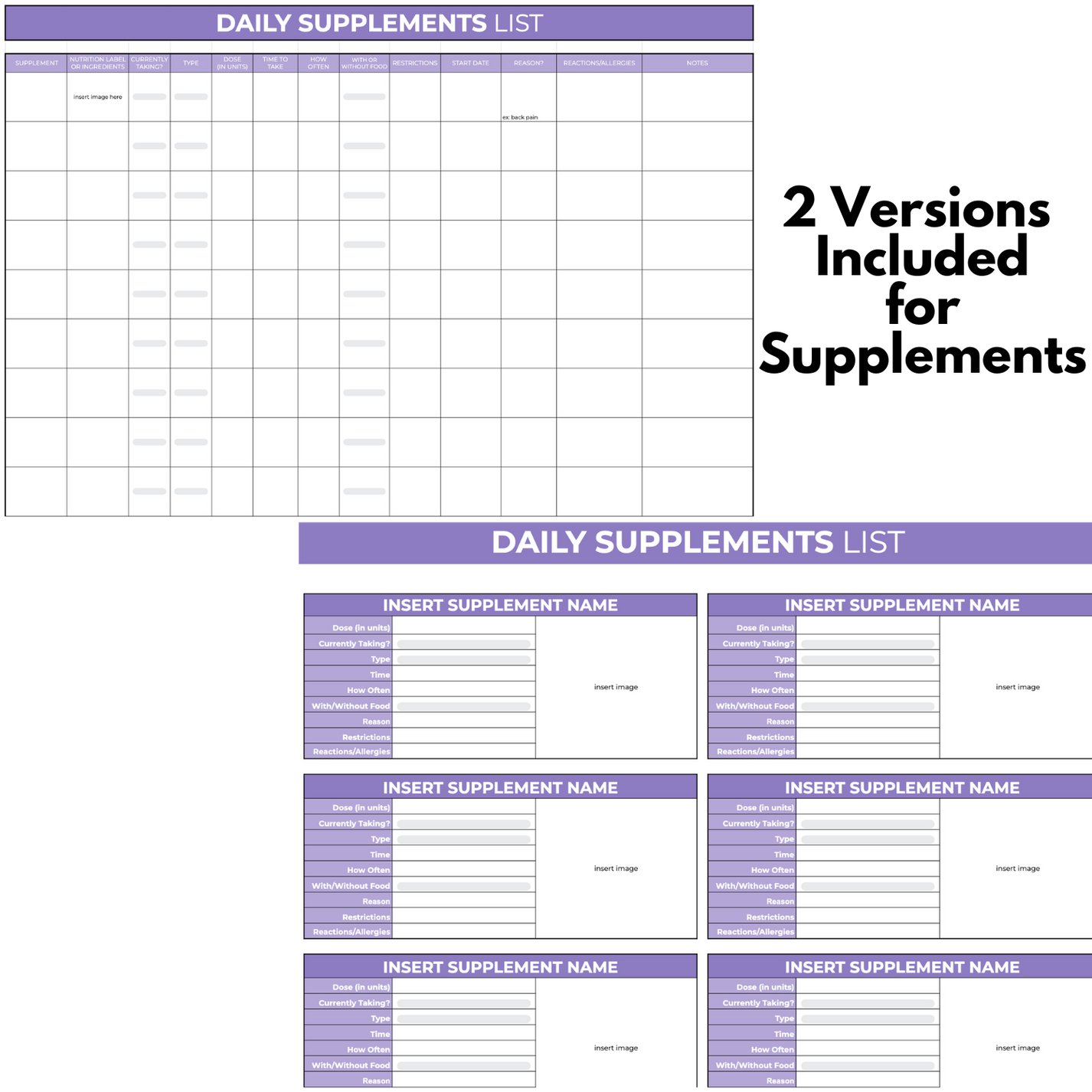 Medication, Vitamin & Supplement Tracker Templates Kim and Kalee