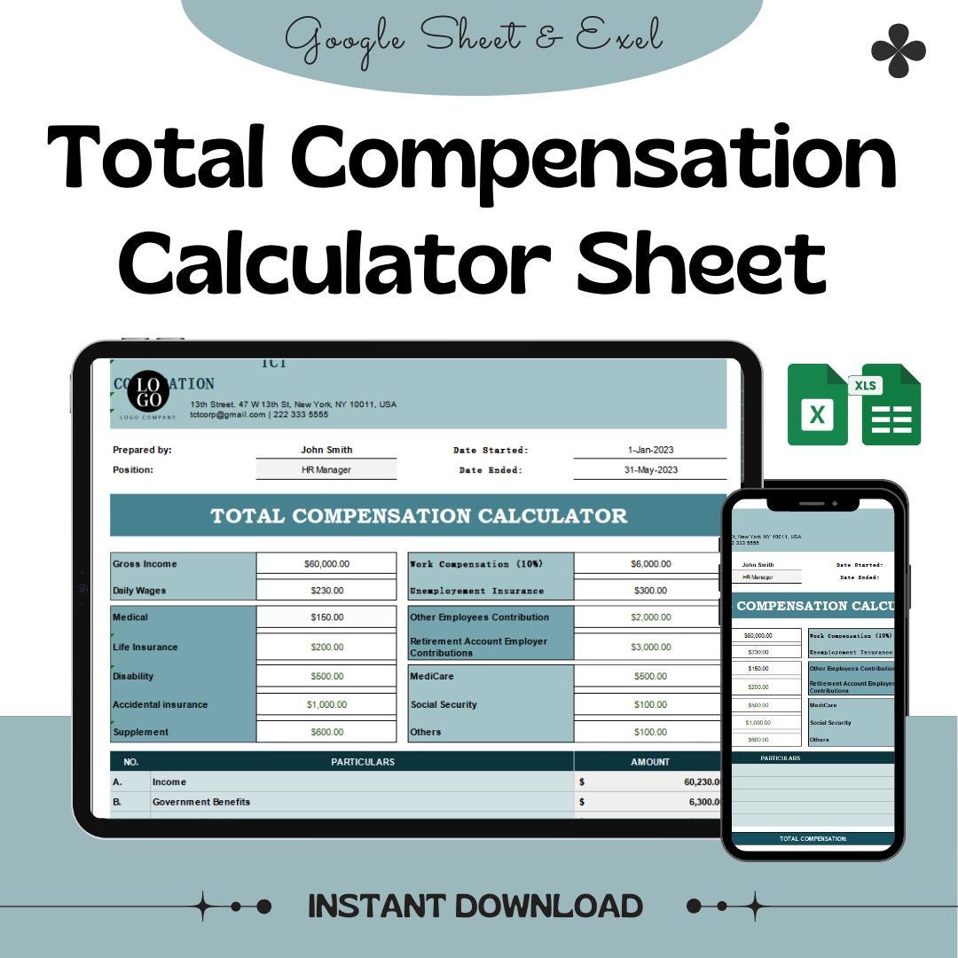 Total Compensation Calculator Template in Excel, Google Sheets, Google