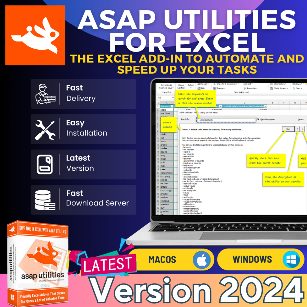 ASAP Utilities for Excel The popular addin for Excel users. Easy to
