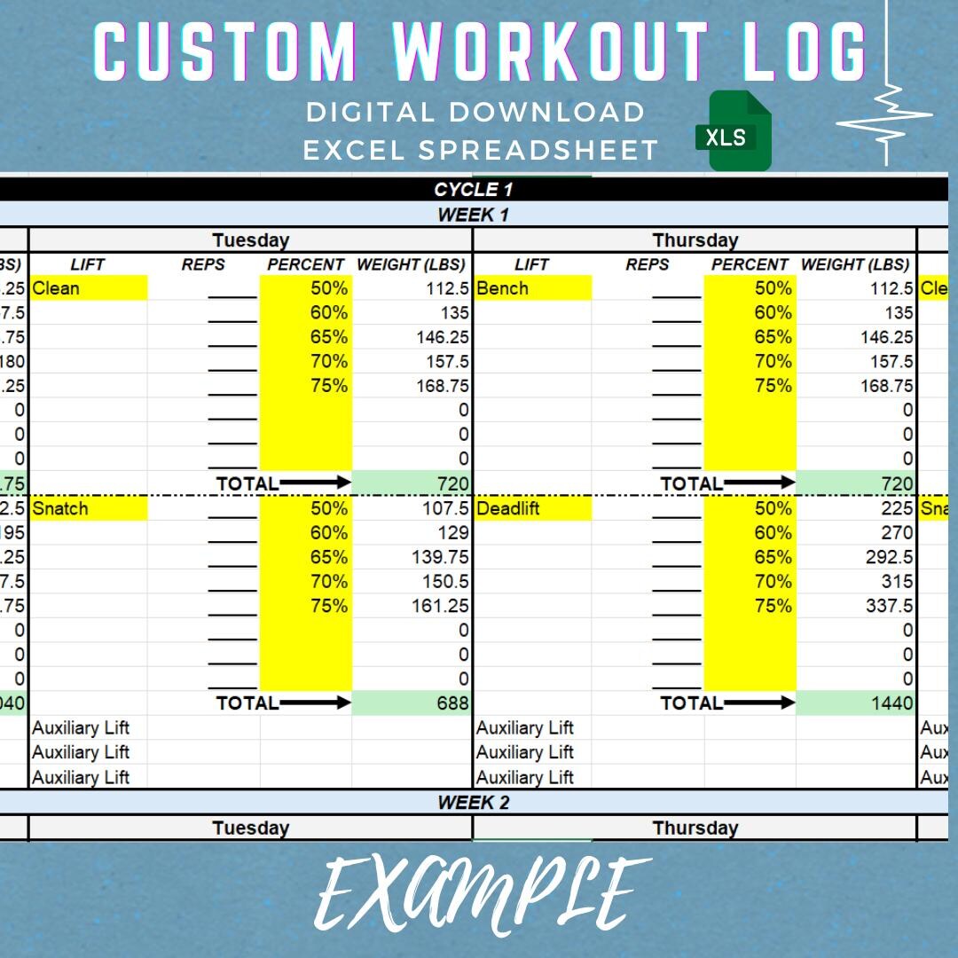 Weight Lifting Tracker Excel Spreadsheet Template, Digital Training Log